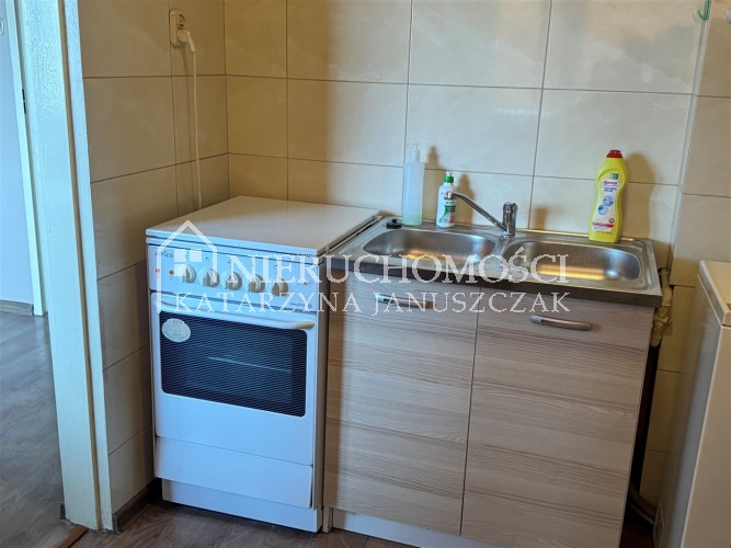 Lokal składa się z: przedpokoju, łazienki, kuchni z oknem, 1 dość dużego pokoju, w którym zagospodarowano miejsce na łóżko sypialniane oraz z dużego BALKON.