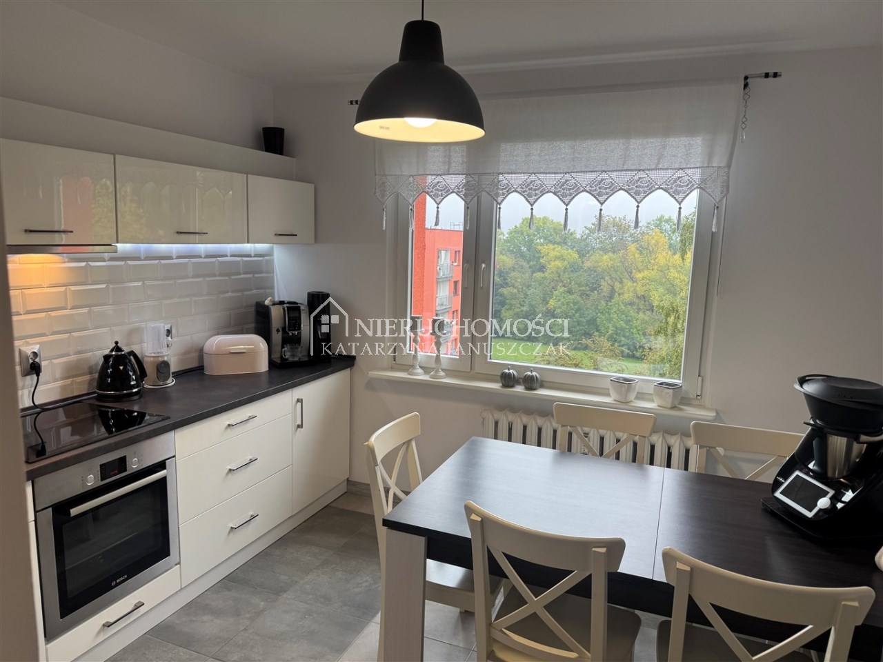 Wszystkie meble widoczne na zdjęciach oraz sprzęt AGD w kuchni w cenie mieszkania.